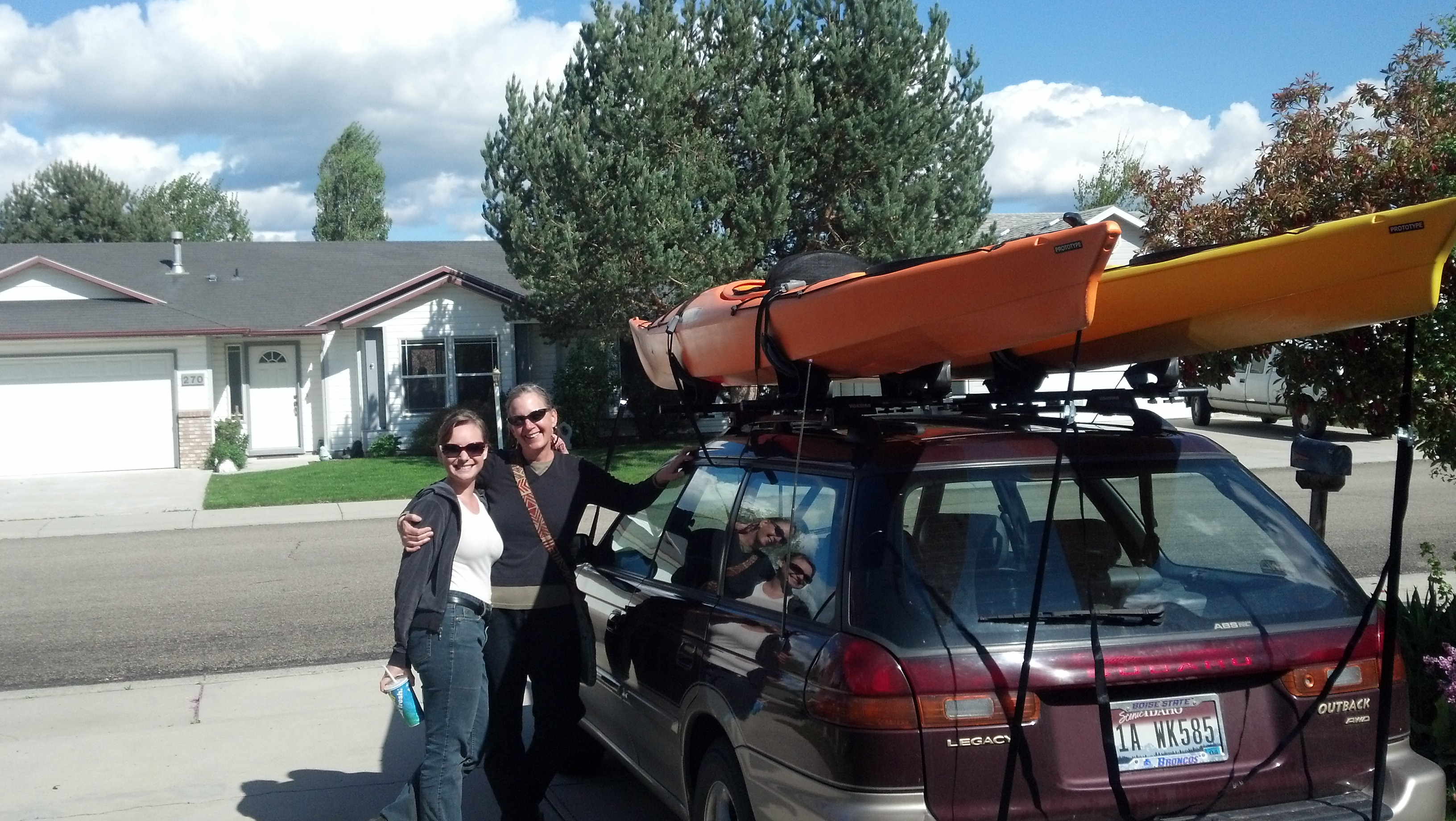 But then we got a call.  They said that a couple of used ones had come up for sale (cheap!!…CHEAP!!) and the next thing you know, we were pulling back into the driveway with a couple of kayaks on the car.